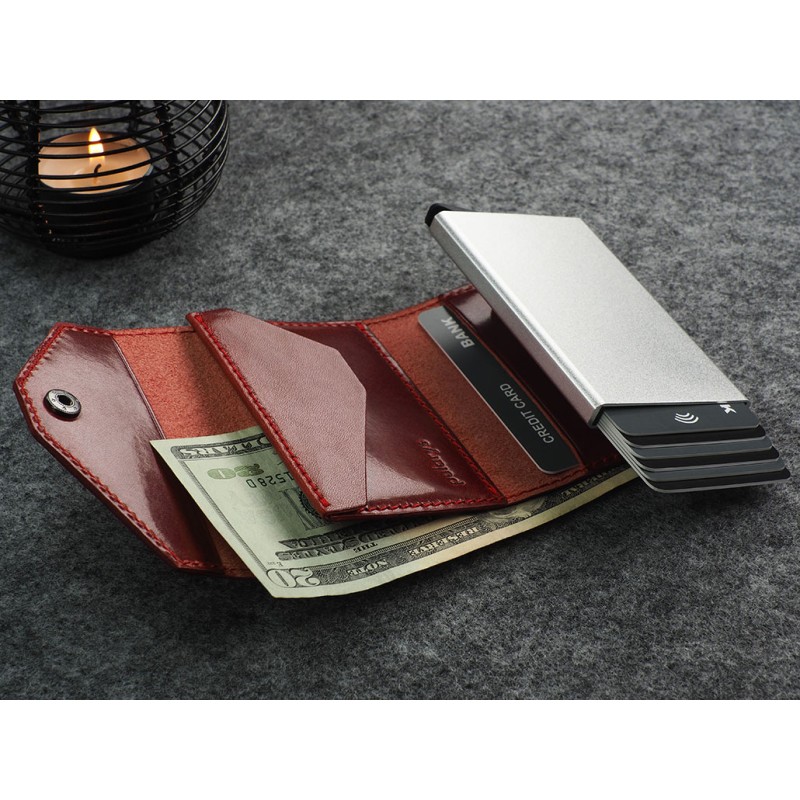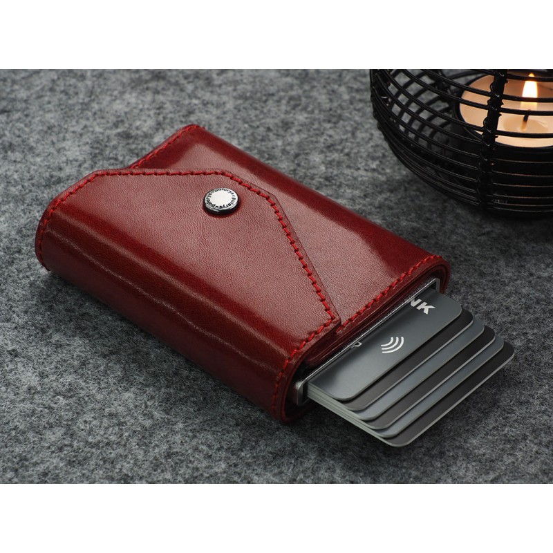 Amazingly capacious - will store many payment cards and documents. The special gradual ejection mechanism ensures quick and easy access to the cards. The elegant functionality of this wallet also includes an additional note pocket and a coin pocket. Thanks to the RFID blocking technology used in its design, your sensitive data and credit card funds are completely safe and protected from unauthorised scanning or theft.