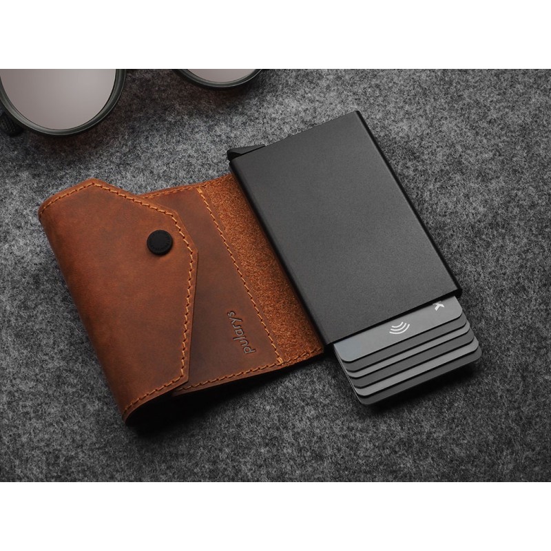 Amazingly capacious - will store many payment cards and documents. The special gradual ejection mechanism ensures quick and easy access to the cards. The elegant functionality of this wallet also includes an additional note pocket and a coin pocket. Thanks to the RFID technology used in its design, your sensitive data and credit card funds are completely safe and protected against unauthorised scanning or theft.