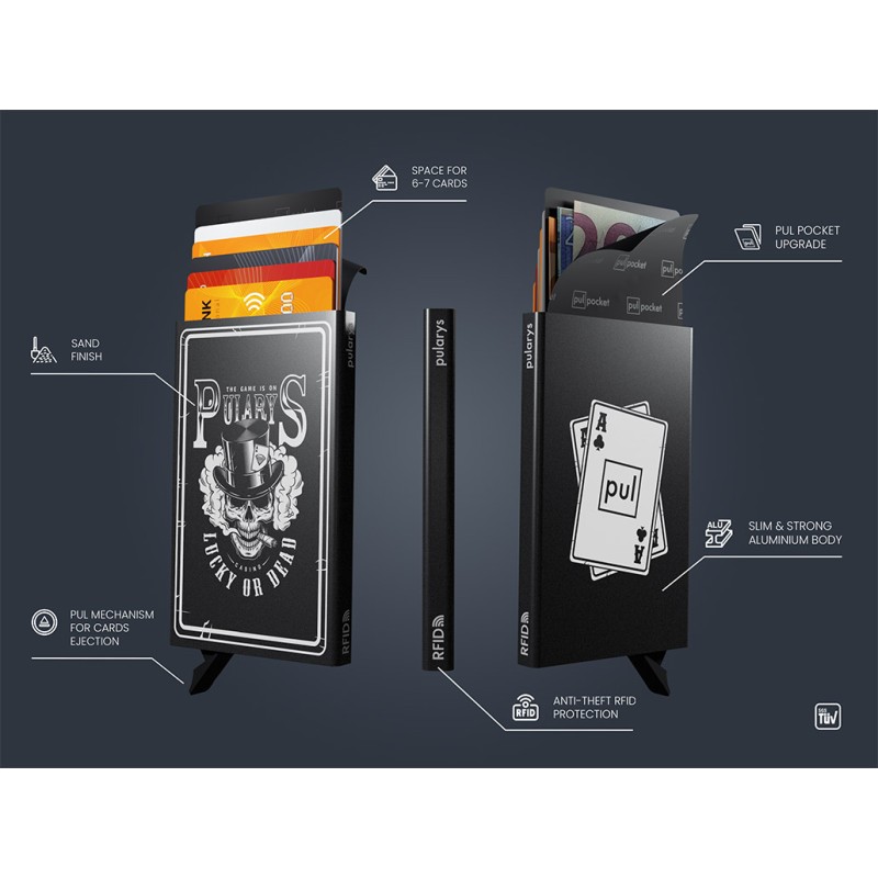 The game is on! Credit card case, made of sturdy aluminium, decorated with a rock and roll skull motif. RFID blocking technology will uncompromisingly and fully protect your payment cards and documents. Anywhere, anytime, you can rest assured - sensitive personal data and cash are protected against theft or unauthorised scanning. The gradual card ejection mechanism ensures easy and quick access to the contents of the case. Thanks to its slim silhouette and compact size, it will fit anywhere - in the smallest handbag, pocket or standard wallet. It will always be with you! A super gift with a claw!