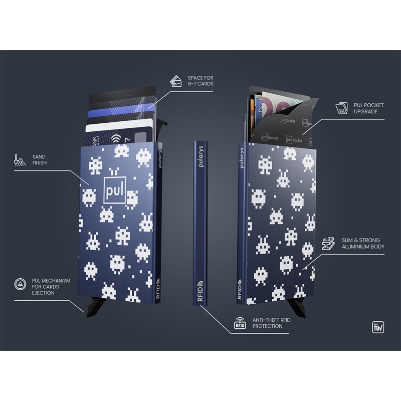Pixellosis! Credit card case, made of sturdy aluminium, printed with pixelated creatures straight from 1980s games. RFID blocking technology will uncompromisingly and fully protect your payment cards and documents. Anywhere, anytime, you can rest assured - sensitive personal data and cash are protected against theft or unauthorised scanning. The gradual card ejection mechanism ensures easy and quick access to the contents of the case. Thanks to its slim silhouette and compact size, it will fit anywhere - in the smallest handbag, pocket or standard wallet. It will always be with you! Give it as a gift to a Commodore fan!